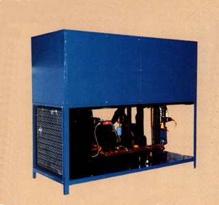Five horsepower, air cooled, flooded chiller used to cool water and water soluble oil on a grinding machine.